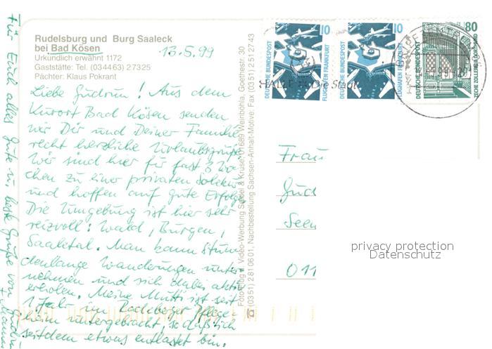 73182635 alte Postkarte Bad Koesen Rudelsburg und Burg Saaleck Fliegeraufnahme postalisch gelaufen Erhaltung siehe scans [FriedD77] KatCode: 11110015084020