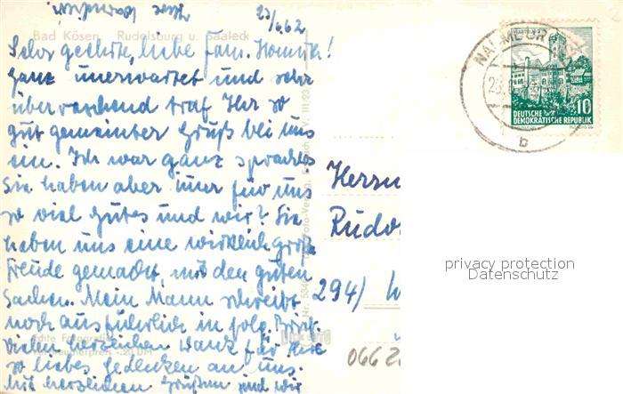 72633764 alte Postkarte Bad Koesen Rudelsburg und Burg Saaleck postalisch gelaufen Erhaltung siehe scans [FriedD77] KatCode: 11110015084020