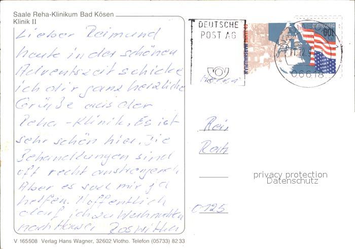 72182714 alte Postkarte Bad Koesen Saale Reha Klinikum postalisch gelaufen Erhaltung siehe scans KatCode: 11110015084020