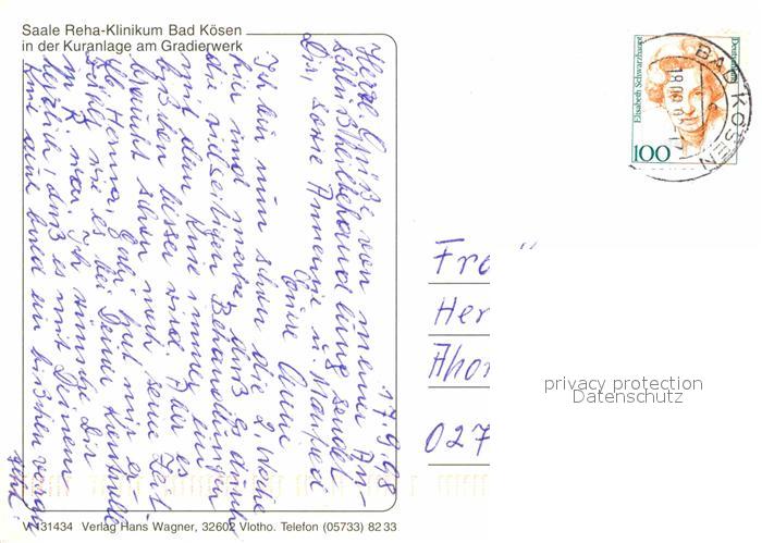 72717625 alte Postkarte Bad Koesen Saale Reha Klinikum Fahnen Kuranlage postalisch gelaufen Erhaltung siehe scans [FriedD77] KatCode: 11110015084020