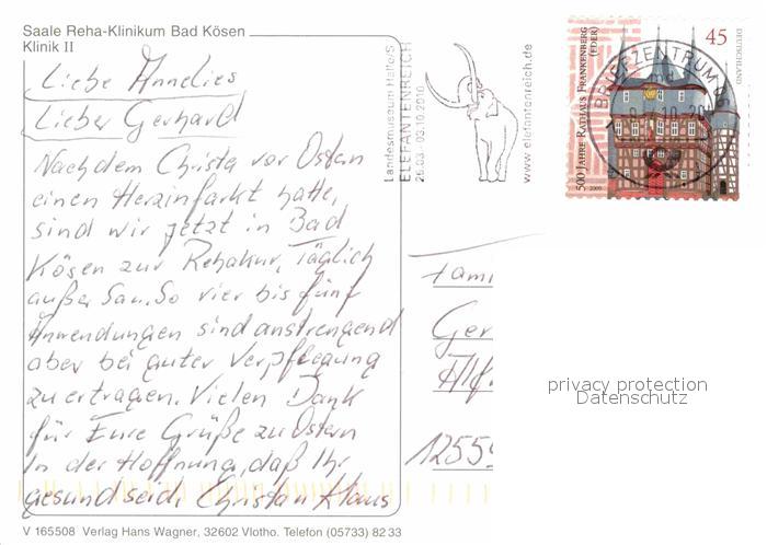 72680936 alte Postkarte Bad Koesen Saale Reha-Klinikum Gruppen- und Einzeltraining postalisch gelaufen Erhaltung siehe scans [LiesaD40] KatCode: 11110015084020