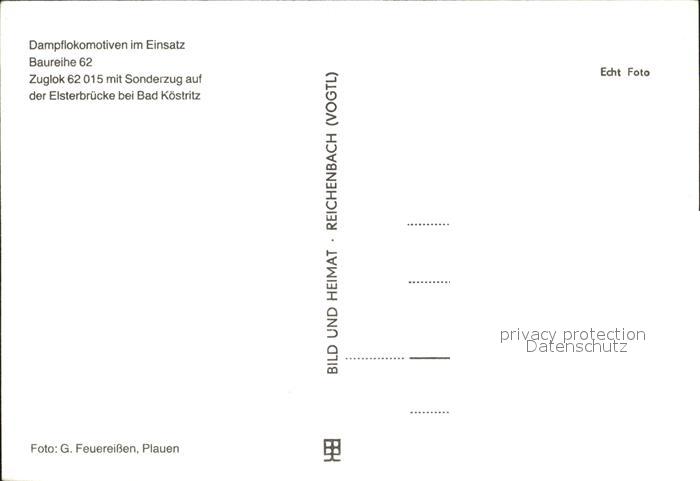 72462519 Bad Koestritz Eisenbahn Dampflokomotive Baureihe 62 Zuglok 62 015 Elsterbruecke postalisch nicht gelaufen Erhaltung siehe scans KatCode: 11110016076003