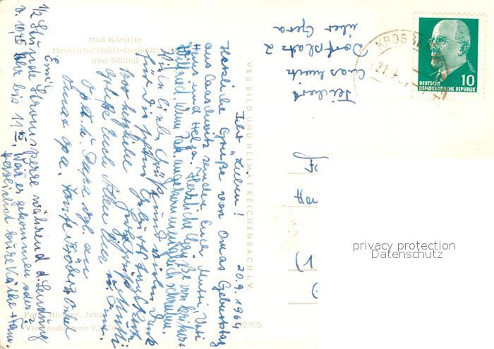 73035846 alte Postkarte Bad Koestritz Heinrich Schuetz Gedenkstaette Schloss postalisch gelaufen Erhaltung siehe scans [KathaD81] KatCode: 11110016076003