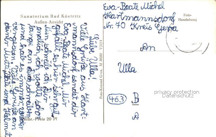 72091466 alte Postkarte Bad Koestritz Sanatorium postalisch gelaufen Erhaltung siehe scans KatCode: 11110016076003