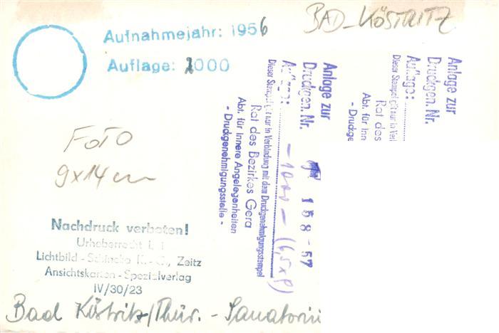 73907799 Bad Koestritz Sanatorium postalisch nicht gelaufen Verlagstempel auf Karte Erhaltung siehe scans [WerneD78] KatCode: 11110016076003