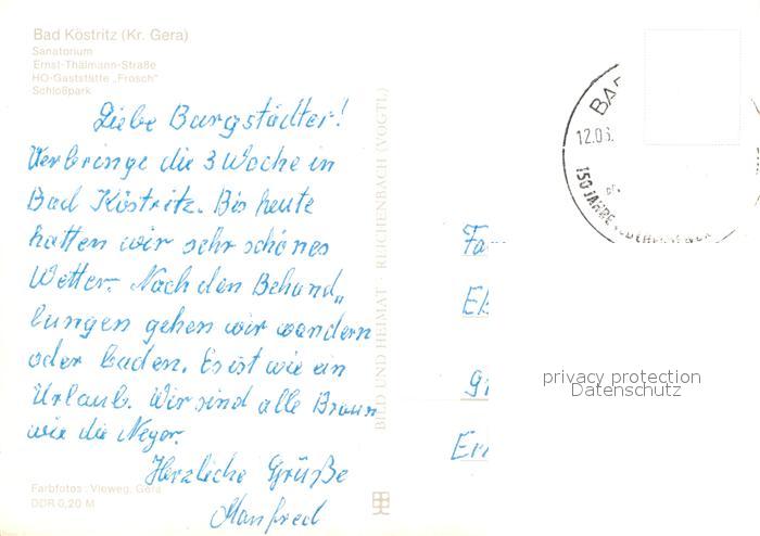 73061844 alte Postkarte Bad Koestritz Sanatorium Ernst Thaelmann Strasse HO Gaststaette Schlosspark postalisch gelaufen Erhaltung siehe scans [FriedD77] KatCode: 11110016076003