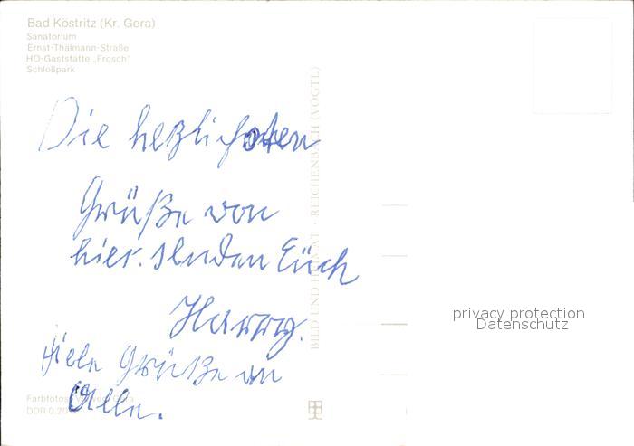 72418344 Bad Koestritz Sanatorium Thaelmann Str HOG Frosch Schlosspark postalisch nicht gelaufen Erhaltung siehe scans KatCode: 11110016076003