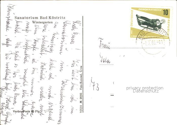 72043100 alte Postkarte Bad Koestritz Sanatorium Wintergarten postalisch gelaufen Erhaltung siehe scans KatCode: 11110016076003