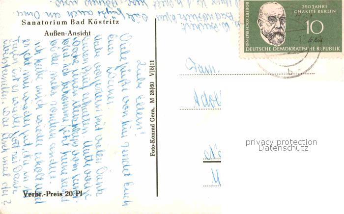 72788086 alte Postkarte Bad Koestritz Stadtansichten Aussenansicht postalisch gelaufen Erhaltung siehe scans [AndreD76] KatCode: 11110016076003