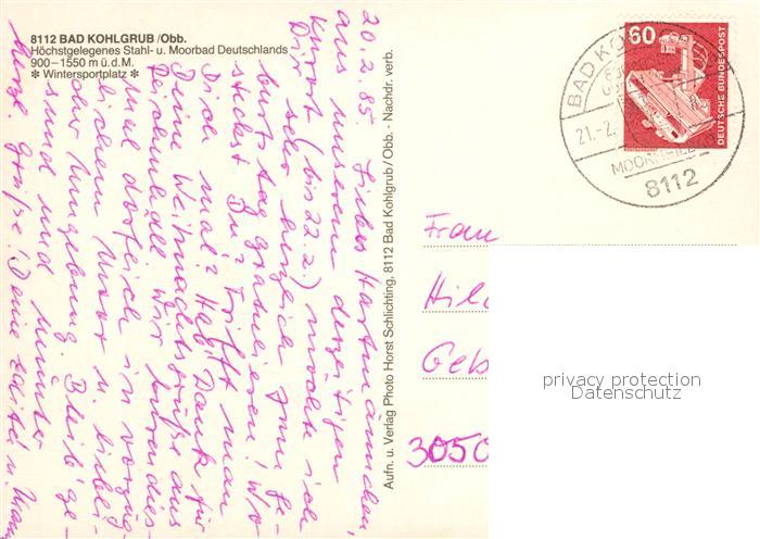 73192609 alte Postkarte Bad Kohlgrub postalisch gelaufen Erhaltung siehe scans [NatalD47] KatCode: 11110009180112