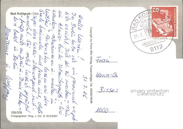 72314212 alte Postkarte Bad Kohlgrub Alpenpanorama Fliegeraufnahme postalisch gelaufen Erhaltung siehe scans KatCode: 11110009180112