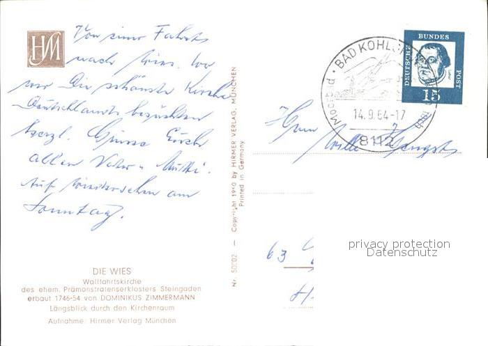 72393921 alte Postkarte Bad Kohlgrub Die Wies Wallfahrtskirche innen postalisch gelaufen Erhaltung siehe scans KatCode: 11110009180112