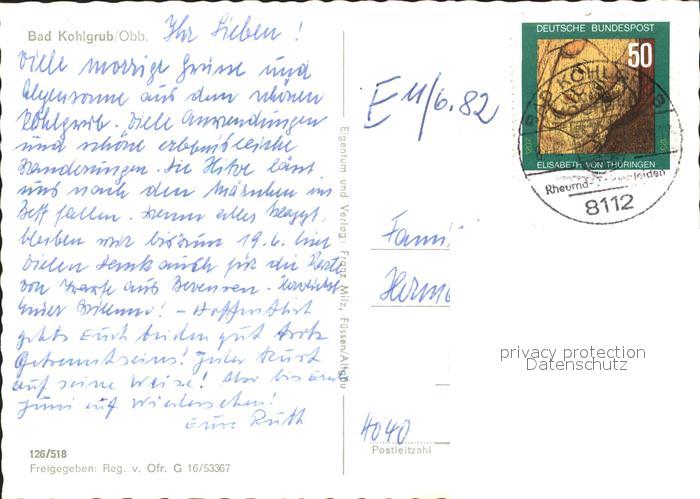 71905776 alte Postkarte Bad Kohlgrub Fliegeraufnahme postalisch gelaufen Erhaltung siehe scans KatCode: 11110009180112