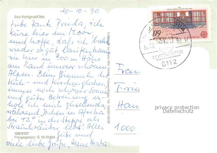 74027146 alte Postkarte Bad Kohlgrub Fliegeraufnahme postalisch gelaufen Erhaltung siehe scans [FriedD77] KatCode: 11110009180112