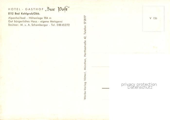 73090893 Bad Kohlgrub Gasthof zur Post postalisch nicht gelaufen Erhaltung siehe scans [KathaD81] KatCode: 11110009180112