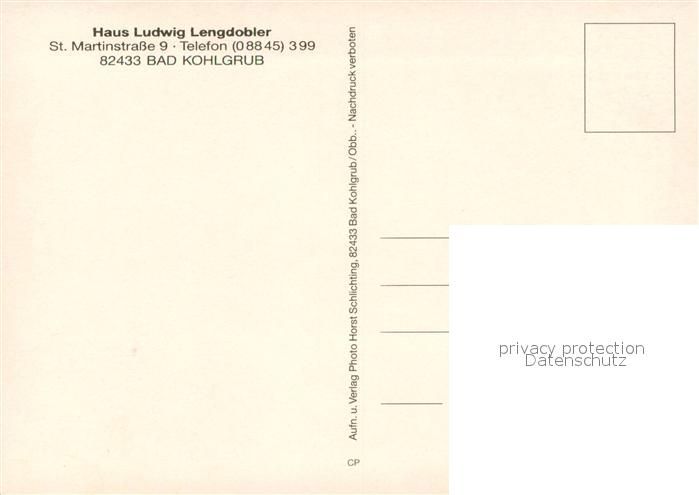 73653080 Bad Kohlgrub Haus Ludwig Lengdobler postalisch nicht gelaufen Erhaltung siehe scans [WerneD78] KatCode: 11110009180112