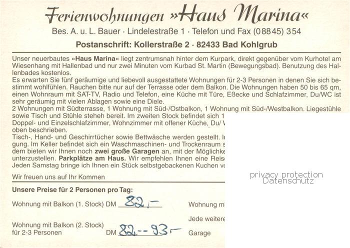 73760520 Bad Kohlgrub Haus Marina Gastraeume postalisch nicht gelaufen Werbekarte (keine Postkarte) Erhaltung siehe scans [FriedD77] KatCode: 11110009180112