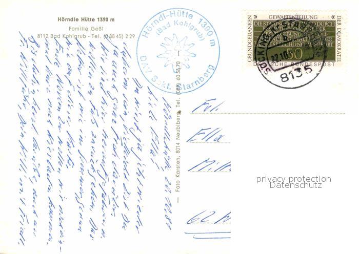 72758927 alte Postkarte Bad Kohlgrub Hoerndle Huette postalisch gelaufen Erhaltung siehe scans [WerneD78] KatCode: 11110009180112