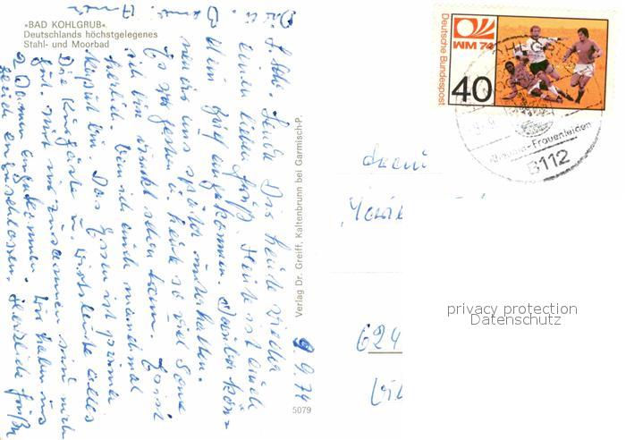 72852566 alte Postkarte Bad Kohlgrub Kirche Kreissparkasse postalisch gelaufen Erhaltung siehe scans [AndreD76] KatCode: 11110009180112