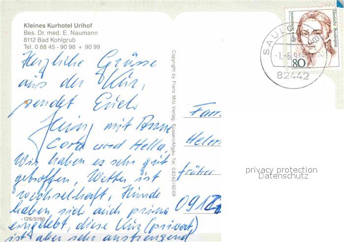 72617436 alte Postkarte Bad Kohlgrub Kleines Kurhotel Urihof Foyer Hallenbad Hof postalisch gelaufen Erhaltung siehe scans [WerneD78] KatCode: 11110009180112