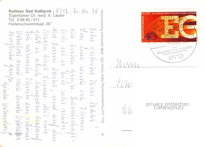 72790561 alte Postkarte Bad Kohlgrub Kurhaus postalisch gelaufen Erhaltung siehe scans [LiesaD40] KatCode: 11110009180112