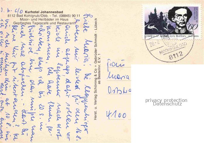 74099469 Bad Kohlgrub Kurhotel Johannesbad postalisch gelaufen Erhaltung siehe scans [WerneD78] alte Postkarte Wern Katcode 11110009180112