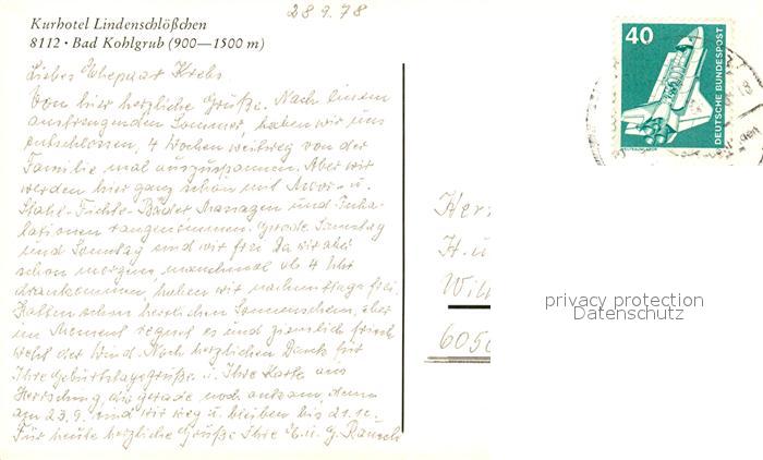 73261635 alte Postkarte Bad Kohlgrub Kurhotel Lindenschloesschen postalisch gelaufen Erhaltung siehe scans [PaolaD17] KatCode: 11110009180112