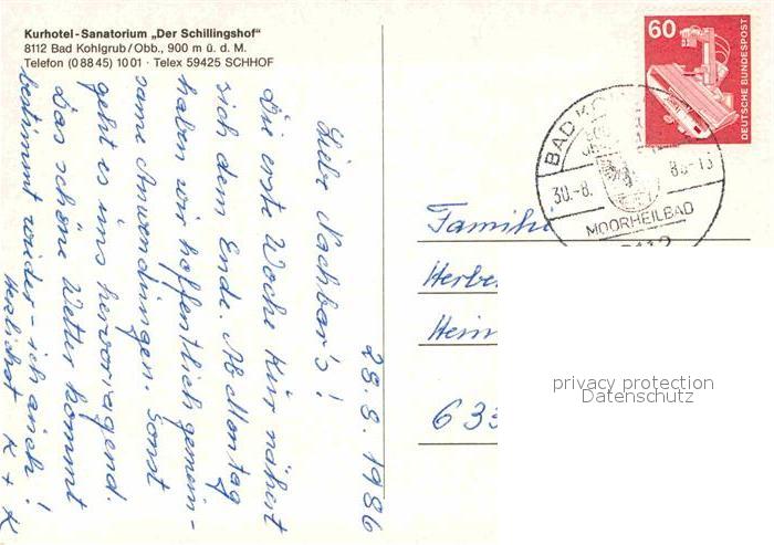 72852779 alte Postkarte Bad Kohlgrub Kurhotel Sanatorium Der Schillingshof Restaurant Hallenbad postalisch gelaufen Erhaltung siehe scans [FriedD77] KatCode: 11110009180112