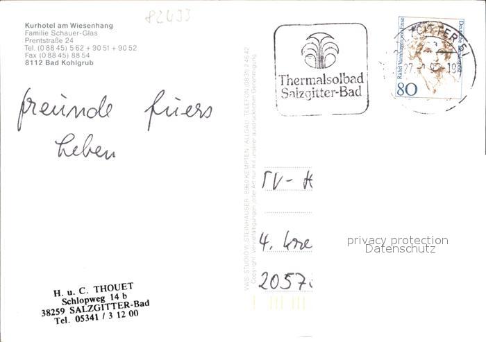 71994461 alte Postkarte Bad Kohlgrub Kurhotel Wiesenhang postalisch gelaufen Erhaltung siehe scans KatCode: 11110009180112