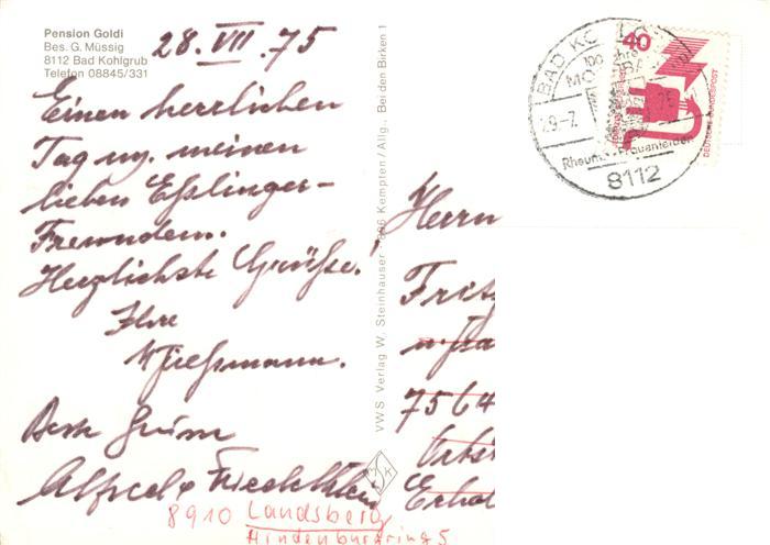 73888641 alte Postkarte Bad Kohlgrub Pension Goldi postalisch gelaufen Erhaltung siehe scans [WerneD78] KatCode: 11110009180112