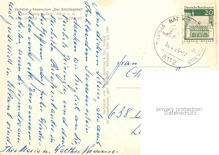 72668386 alte Postkarte Bad Kohlgrub Sanatorium Der Schillingshof postalisch gelaufen Erhaltung siehe scans [AndreD76] KatCode: 11110009180112