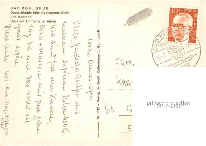 72771980 alte Postkarte Bad Kohlgrub Stahl-Moorbad postalisch gelaufen Erhaltung siehe scans [LiesaD40] KatCode: 11110009180112