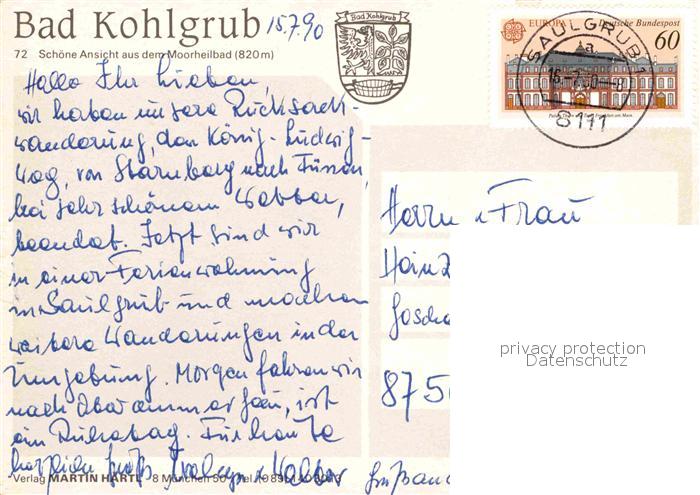 72705742 alte Postkarte Bad Kohlgrub Teilansicht postalisch gelaufen Erhaltung siehe scans [AndreD76] KatCode: 11110009180112