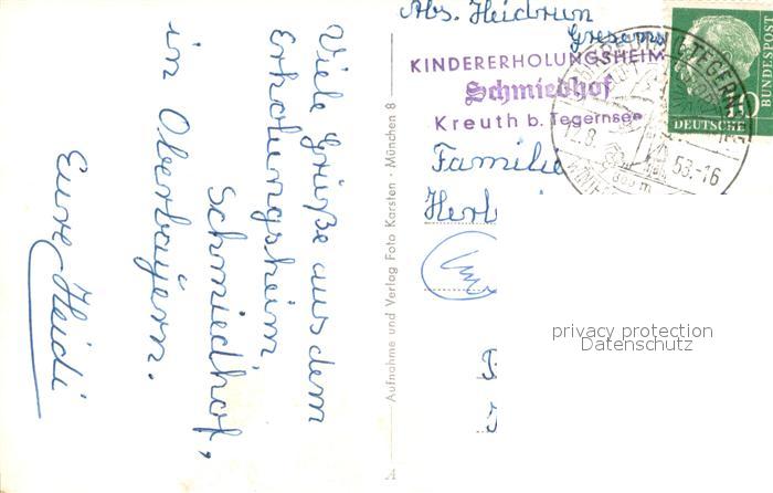 73645683 alte Postkarte Bad Kreuth Kinderheim Schmiedhof postalisch gelaufen Erhaltung siehe scans [FriedD77] KatCode: 11110009182124