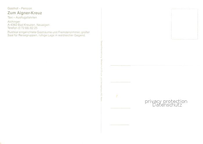 73281843 Bad Kreuzen Gasthof Pension Zum Aigner Kreuz postalisch nicht gelaufen Erhaltung siehe scans [WerneD78] KatCode: 11390313041108