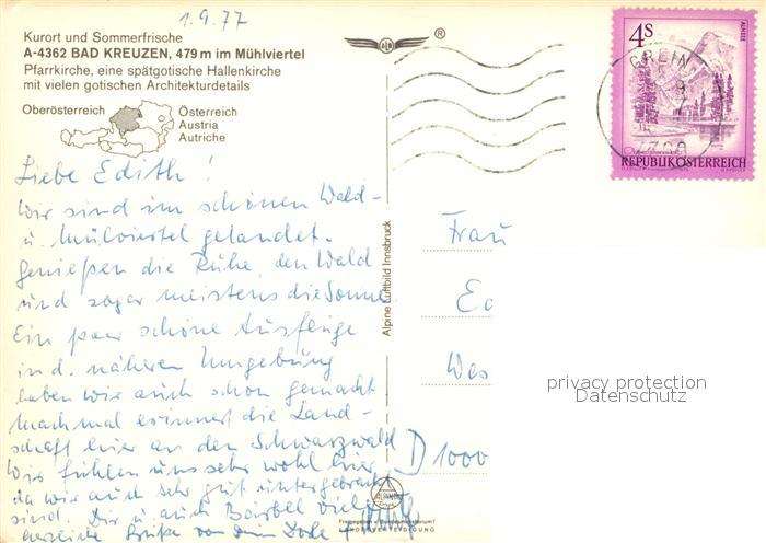 13311596 alte Postkarte Bad Kreuzen im Muehlviertel Pfarrkirche Hallenkirche postalisch gelaufen Erhaltung siehe scans [WerneD78] KatCode: 11390313041108