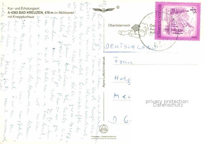 72835052 alte Postkarte Bad Kreuzen Kurort Erholungsort mit Kneippkurhaus Fliegeraufnahme postalisch gelaufen Erhaltung siehe scans [FriedD77] KatCode: 11390313041108