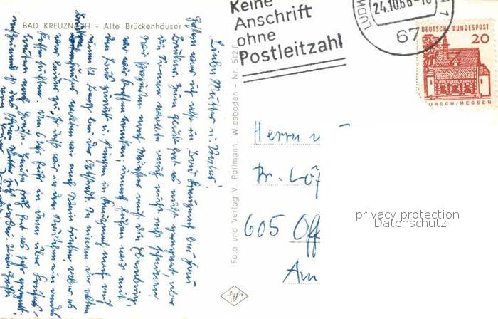 72840938 alte Postkarte Bad Kreuznach Alte Brueckenhaeuser postalisch gelaufen Erhaltung siehe scans [NatalD47] KatCode: 11110007133006