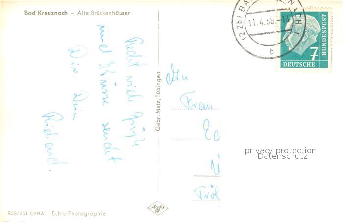 73138725 alte Postkarte Bad Kreuznach Alte Brueckenhaeuser Nahebruecke postalisch gelaufen Erhaltung siehe scans [FriedD77] KatCode: 11110007133006