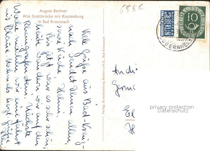 41600194 Bad Kreuznach Alte Stadtbrücke mit Kauzenburg Künstlerkarte Augus Bechter KatCode 11110007133006