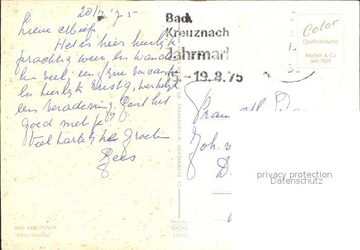 72305159 alte Postkarte Bad Kreuznach Alter Stadteil am Fluss postalisch gelaufen Erhaltung siehe scans KatCode: 11110007133006