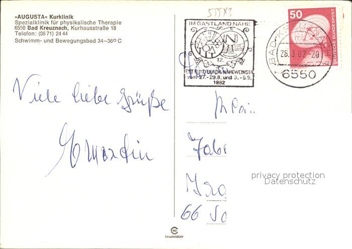 72238460 alte Postkarte Bad Kreuznach Augusta Kurklinik Schwimm- Bewegungsbad postalisch gelaufen Erhaltung siehe scans KatCode: 11110007133006
