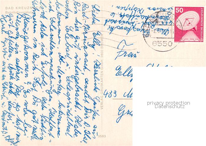 73864087 alte Postkarte Bad Kreuznach Bahnhofsvorplatz Cafe Pavillon Brunnen postalisch gelaufen Erhaltung siehe scans [WerneD78] KatCode: 11110007133006