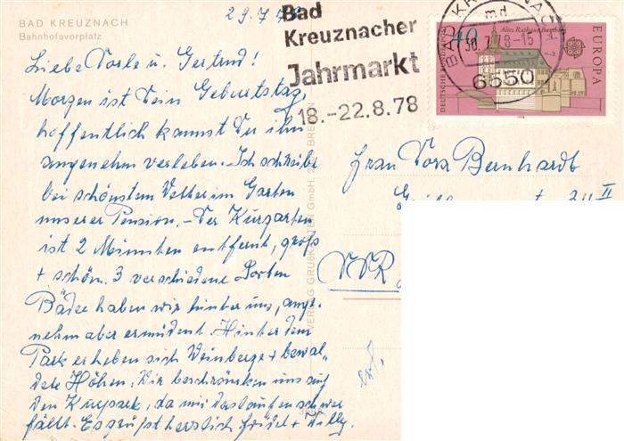 73882207 alte Postkarte Bad Kreuznach Bahnhofsvorplatz Cafe Pavillon postalisch gelaufen Erhaltung siehe scans [WerneD78] KatCode: 11110007133006