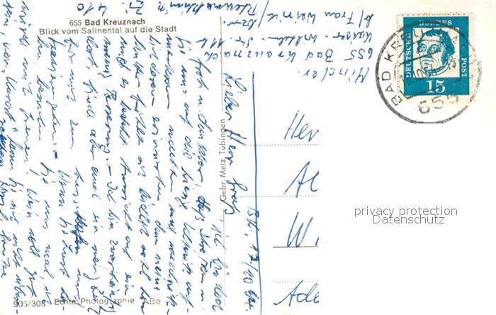 73160038 alte Postkarte Bad Kreuznach Blick vom Salinental postalisch gelaufen Erhaltung siehe scans [LiesaD40] KatCode: 11110007133006