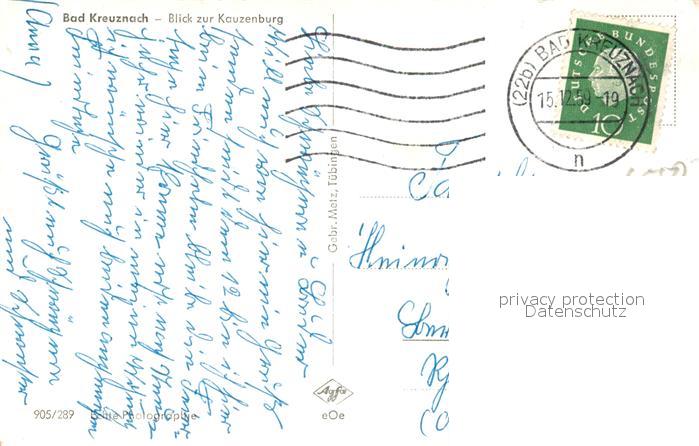 43362371 alte Postkarte Bad Kreuznach Blick zur Kauzenburg postalisch gelaufen Erhaltung siehe scans [WerneD78] KatCode: 11110007133006