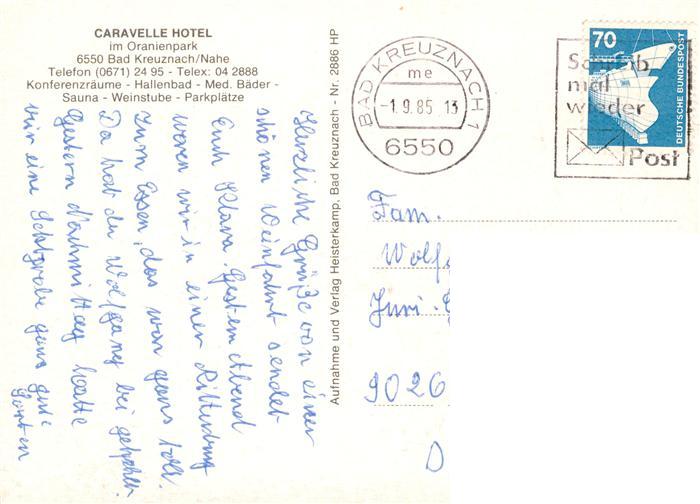 73882644 alte Postkarte Bad Kreuznach Caravelle Hotel im Oranienpark postalisch gelaufen Erhaltung siehe scans [WerneD78] KatCode: 11110007133006