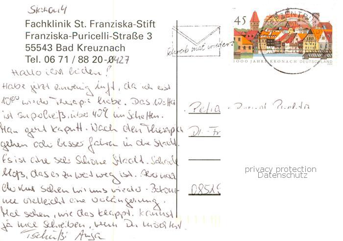 73829443 alte Postkarte Bad Kreuznach Fachklinik St Franziska Stift postalisch gelaufen Erhaltung siehe scans [FriedD77] KatCode: 11110007133006