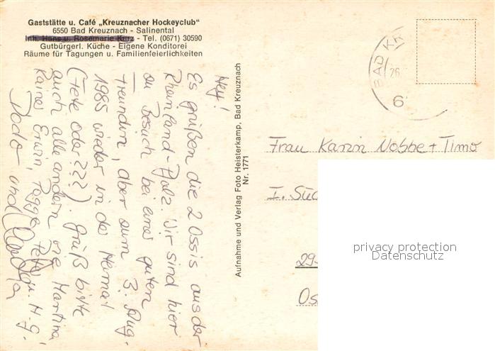 73686147 alte Postkarte Bad Kreuznach Gaststaette und Cafe Kreuznacher Hockeyclub Speisesaal Freiterrasse postalisch gelaufen Erhaltung siehe scans [WerneD78] KatCode: 11110007133006