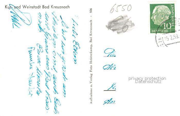 73140522 alte Postkarte Bad Kreuznach Gesamtansicht Uferweg an der Nahe Brueckenhaeuser Ellerbach Kauzenburg postalisch gelaufen Erhaltung siehe scans [FriedD77] KatCode: 11110007133006